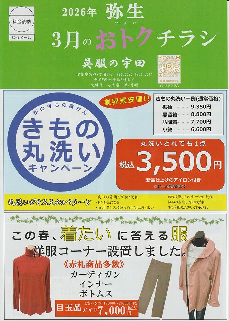 3月中 丸洗いやお買い得商品を掲載