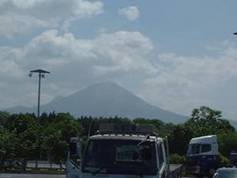 曇っているんでよくわからないですけど、富士山に似てると言えば似てます。きれいな御山ですがね。もう少し形よく見えるところには車が停められなかったんですよ。 |