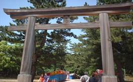 ここからが神域です。やっぱり伊勢と違って俗世とわざわざ切り離そうと言う感じの境内ではありませんでした。こういうところが結構好きだったりします。それでいて、聖性が失われているわけではない んですよね。 |