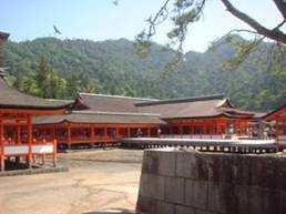 厳島神社。台風で大被害を受けたと思えないほどの美しさです。平清盛、毛利元就、豊臣秀吉などの崇敬を受けた古式ゆかしき神の社。エセ神主としては感極まるものがあります。 |