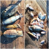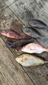 | 5/3 |   谷田さん 1,1キロ×2  島田さん 800g  笠川さん 530g  玉置さん ワラサ70㎝・アオリ500g その他 アジ・小鯖等 |