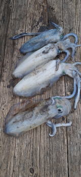 | 4/8 |   白川さん アオリ 2.4キロ 甲イカ 1.8キロ 1.3キロ |