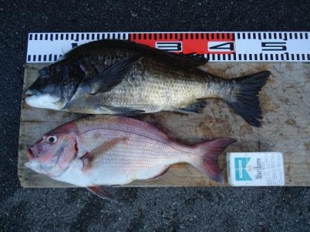 9月4日 渡辺様 表郷筏でチヌ 47cm 1尾 真鯛 40cm 1尾 |