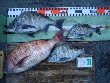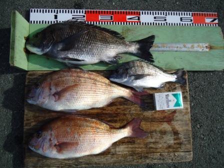 4月2日 楠本様 磯でチヌ 25〜38cm 3尾 マダイ 47cm 1尾 |