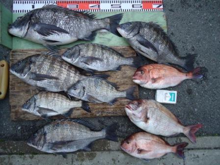 1月3日 青木様 筏で真鯛 40cm 1尾 他 タナゴ |