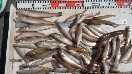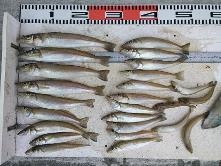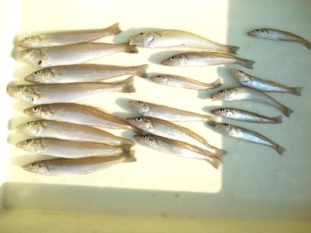 3月27日 隅田様 2名 磯でサヨリ 28〜37cm 26尾 |