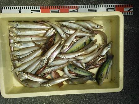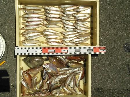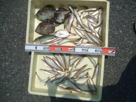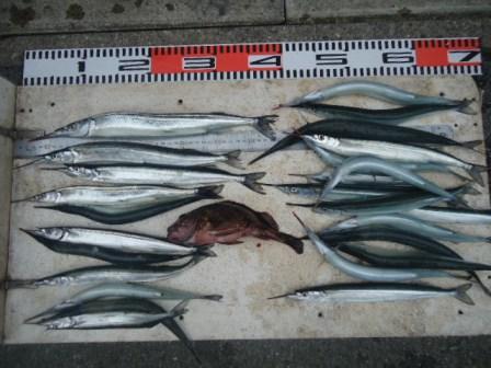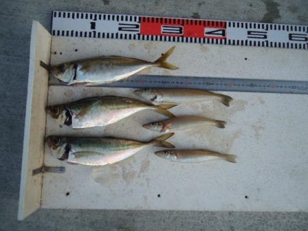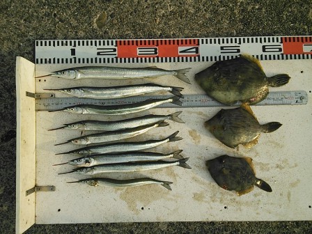 5月22日 加藤様 筏でサヨリ37cmまで9尾 カワハギ3尾 他 マメアジ |