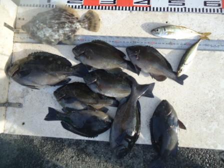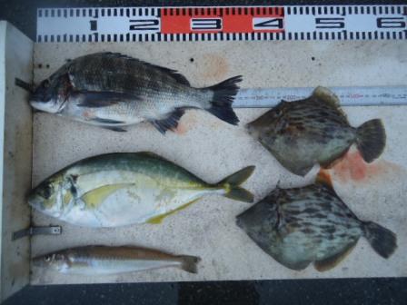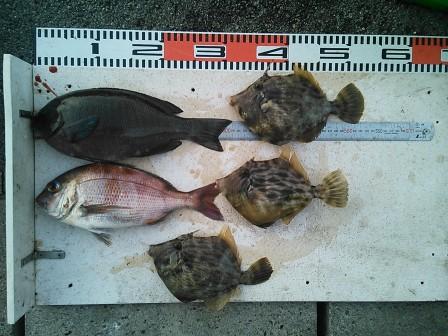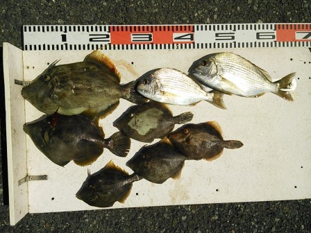 6月1日 高野様 筏でカワハギ5尾 他 アイゴ、グレ、マメアジ |