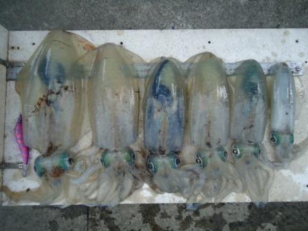 5月8日 中西様3名 仕立て船 アオリイカ 800gまで6杯 |