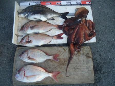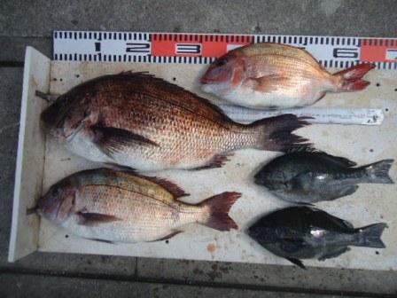 5月1日 大渡様 筏でチヌ47cm 1尾 真鯛42cmまで3尾 ハナオレ38cm 1尾 真蛸1杯 |