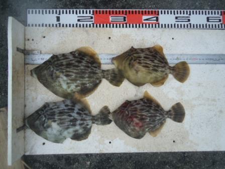 4月29日 市江様 筏でカワハギ 26cmまで4尾 |