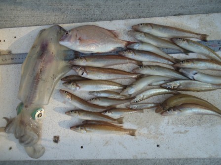 4月27日 植松様 筏でアオリイカ700g 1杯 他 キス、チャリコ |