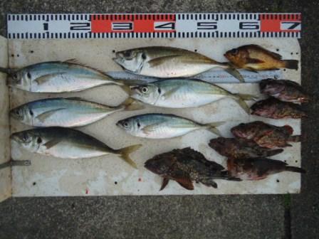 4月14日 岡田様 磯でアジ33cmまで6尾 他 カサゴ、メバル |