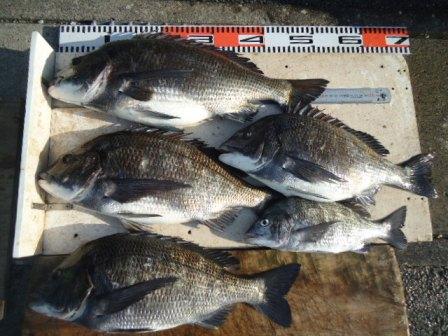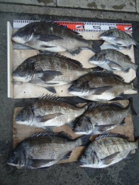 3月22日 伴様 筏でチヌ40〜52cm 6尾 真鯛38〜47cm 7尾 カレイ42cm 1尾 (餌:ボケ、オキアミ) |