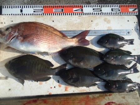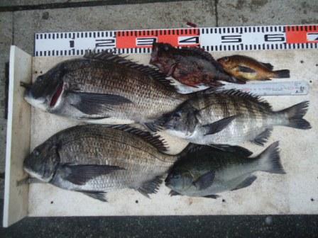 3月31日 杉本様 磯でチヌ 46cmまで3尾 他 グレ、メバル、カサゴ |