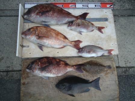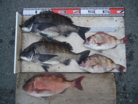 4月4日 小泉様 筏で真鯛25〜52cmまで5尾 グレ28cm 1尾 |