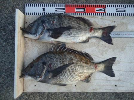 3月23日 楠本様 磯でチヌ 28〜46cm 2尾 |
