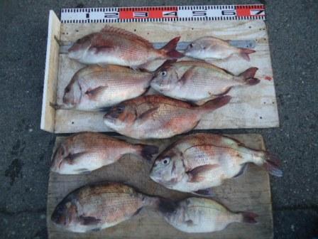 3月23日 岡田様 筏で真鯛 27〜42cmまで9尾 (餌:ボケ、オキアミ) |