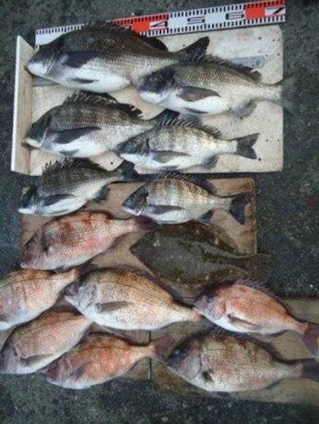 4月12日 河野様 筏でイシダイ30cm 1尾 他 真鯛、カレイ |