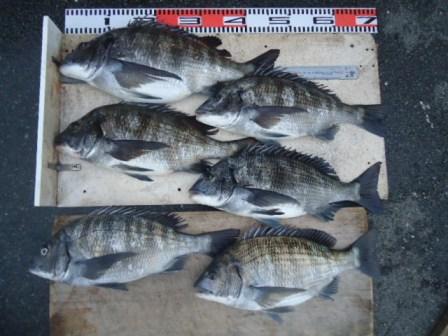 3月20日 楠本様 磯でチヌ 40〜48cm 6尾 (餌:オキアミ) |