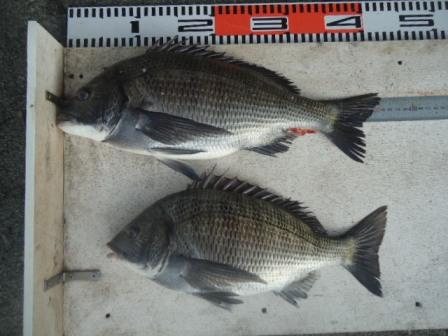 4月15日 笹島様 磯でチヌ47、49cm 2尾 |